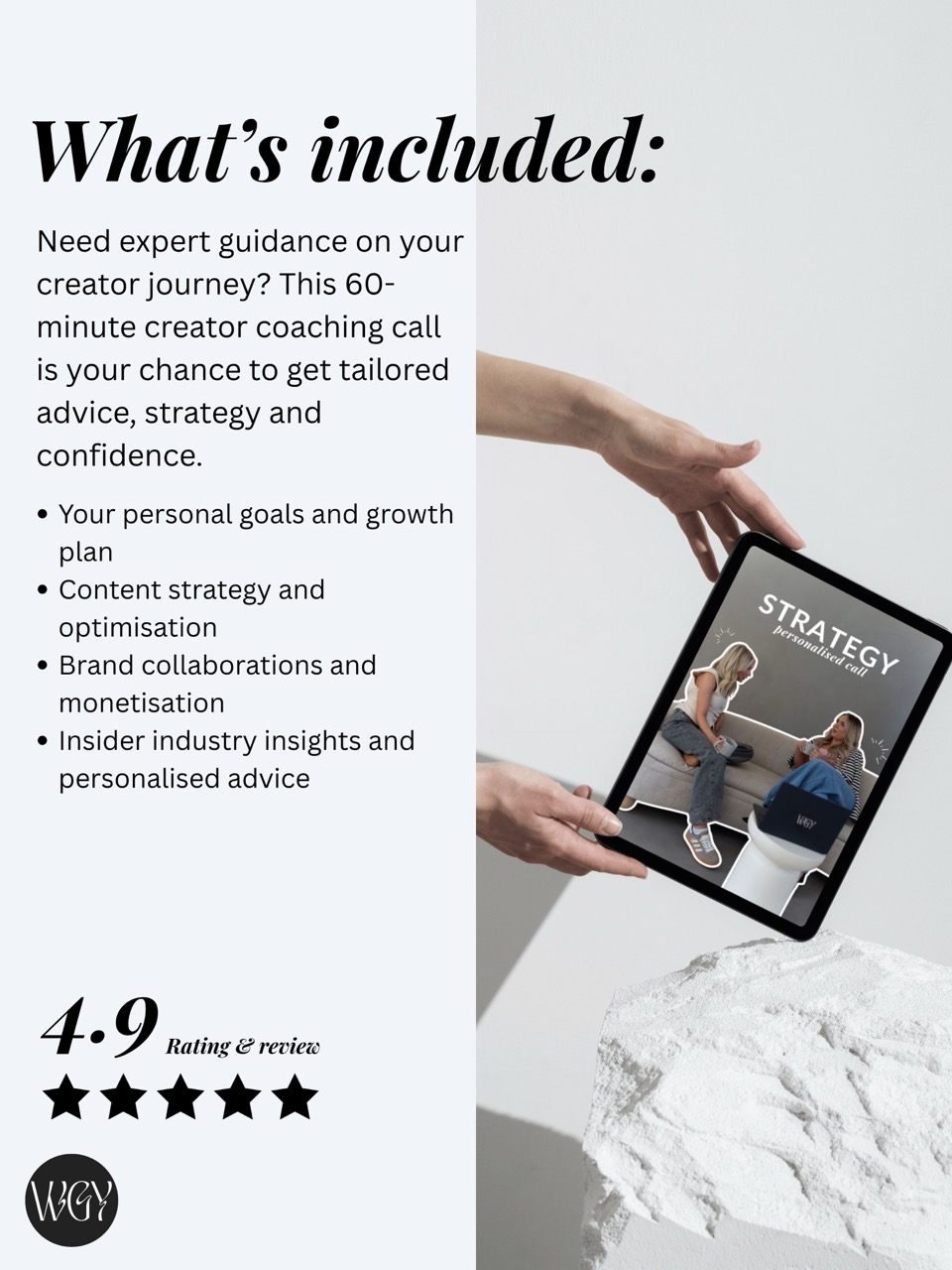 Whether you want to grow your audience, secure more brand deals, or get practical tips to optimise your content, this one-to-one influencer strategy session will give you the clarity and direction you need.