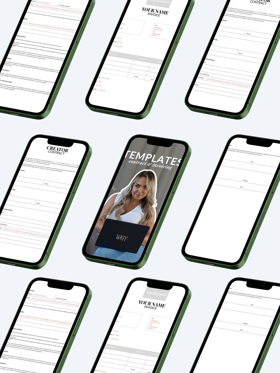 You’ll get a contract template for collaborations plus an invoice template to request payments from brands.