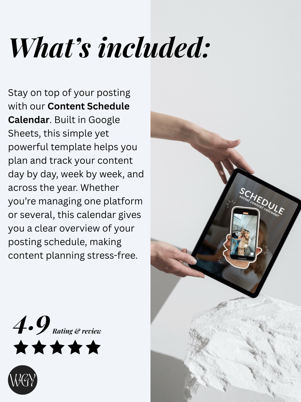 Stay on top of your posting with our Content Schedule Calendar. Built in Google Sheets, this simple yet powerful template helps you plan and track your content day by day, week by week, and across the year. Whether you’re managing one platform or several, this calendar gives you a clear overview of your posting schedule, making content planning stress-free.